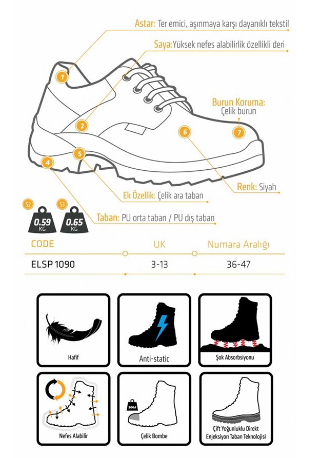 All YDS work safety shoes provide comfort with their lightness, cushion and breathable materials; a reliable security with its protective layers and noticable aesthetics with its nice looking design.